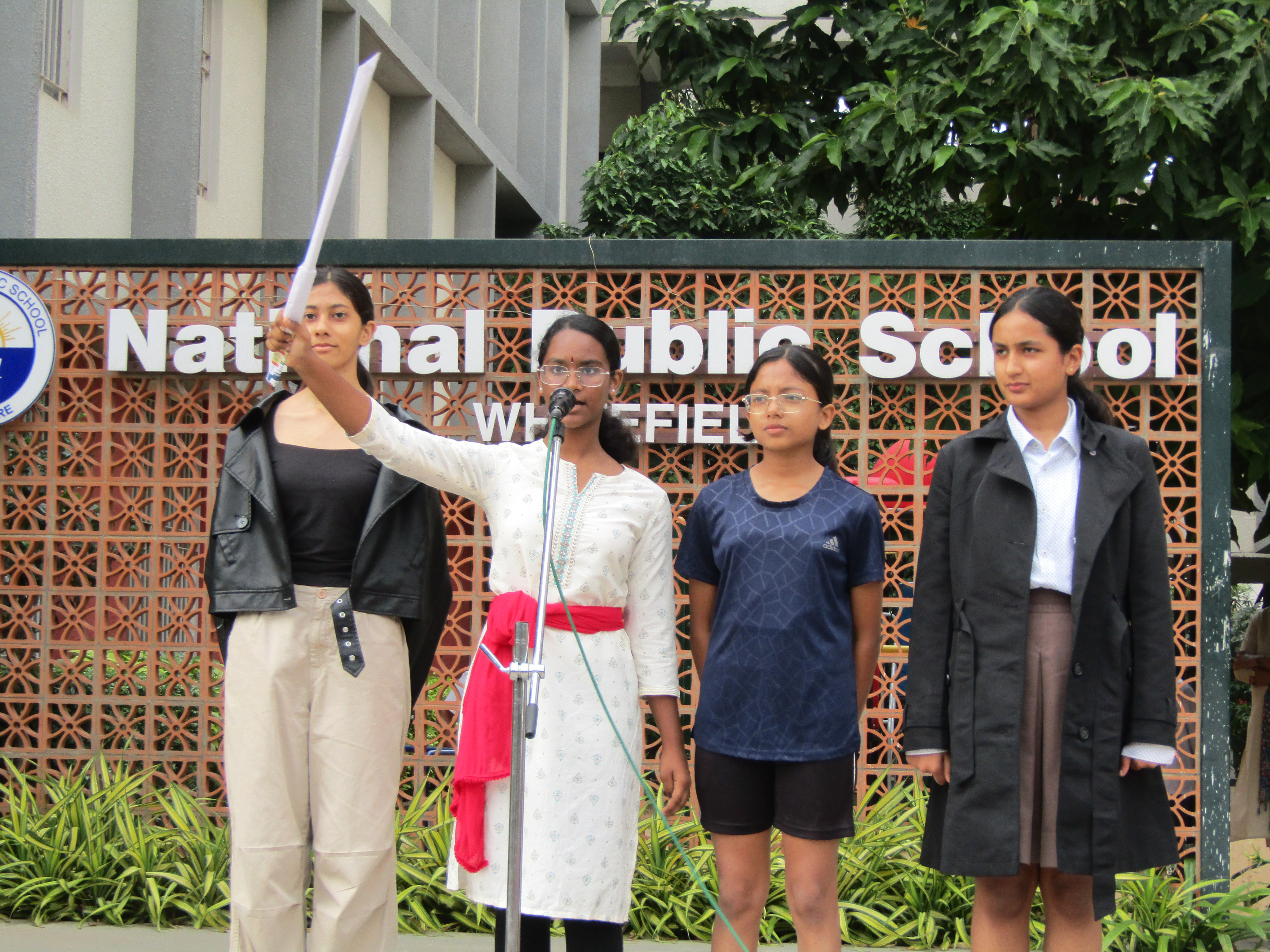 Class 10 E conducted the morning assembly on the theme “The Impact of Social Media”. The thought for the day — “We become what we constantly consume, choose wisely” — set a reflective tone.